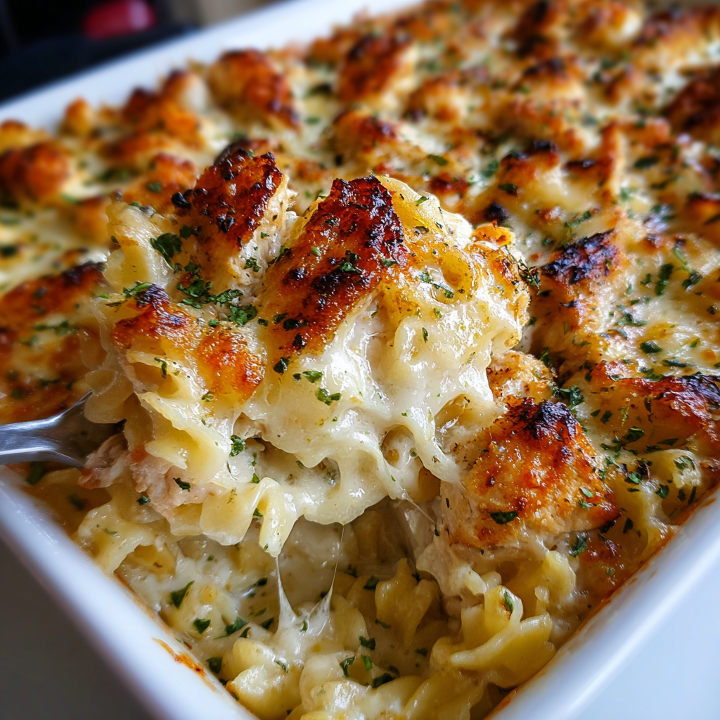 Eksplozja smaków i kremowa konsystencja tej zapiekanki z kurczakiem i sosem Alfredo zachwyci podczas rodzinnych obiadów i przyjęć.